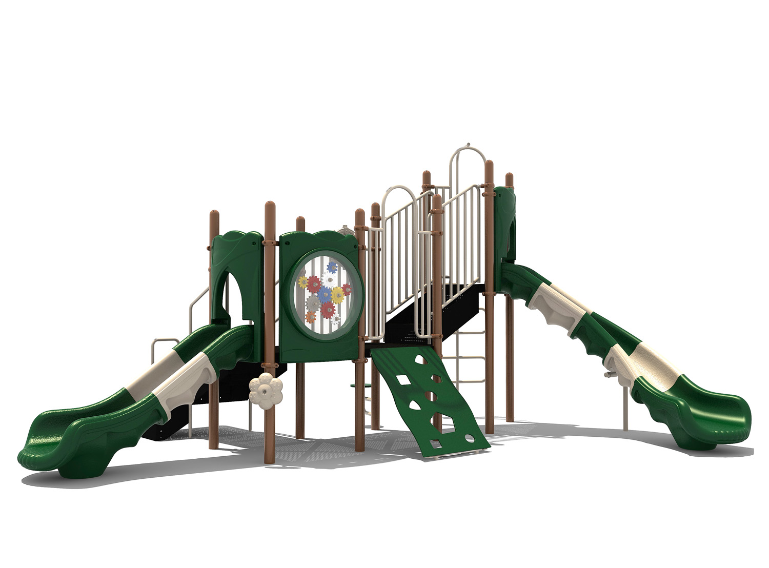 Noah Ridge Woodland is a nature-themed playground designed with green, brown, and beige elements to mimic the beauty of the outdoors. With the added shade, children can engage in physical activity, social interaction, and cognitive development while staying cool and protected. Experience the joy of play in a natural-inspired setting that harmonizes with the surrounding environment!